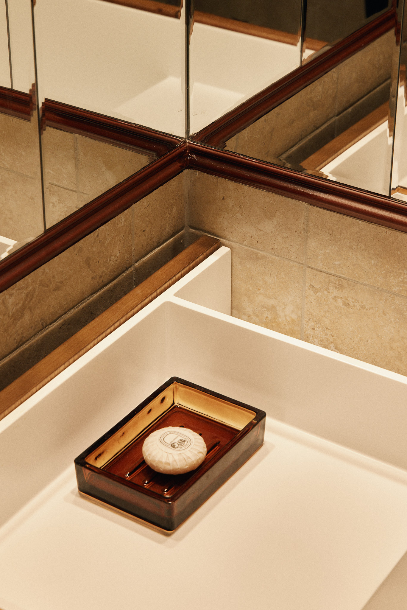 Les matières et les détails ont été travaillés avec exigence. Les éléments d’origine dialoguent avec les nouvelles lignes, notamment à travers des encadrements en bois qui structurent les ouvertures et soulignent les perspectives. Dans les salles de bain, le zellige et le travertin sont mis en œuvre dans des compositions affirmées, valorisées par des jeux de miroirs et des palettes de couleurs cohérentes. Un travail attentif a également été mené sur les motifs et les revêtements muraux, afin de concevoir des espaces enveloppants et chaleureux.